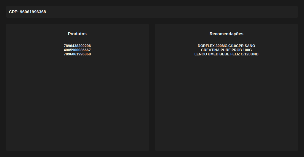 A interface mostrada acima captura automaticamente todos os códigos de barras digitados ou lidos pelo leitor. Ao pressionar a tecla END, exibe recomendações inteligentes na tela e imprime as sugestões sempre que houver uma impressora térmica conectada